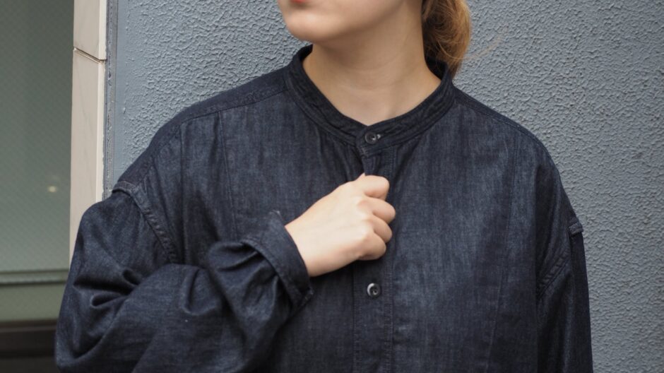 [D.M.G / ディーエムジー] 6ozデニム ギャザーロングシャツ
