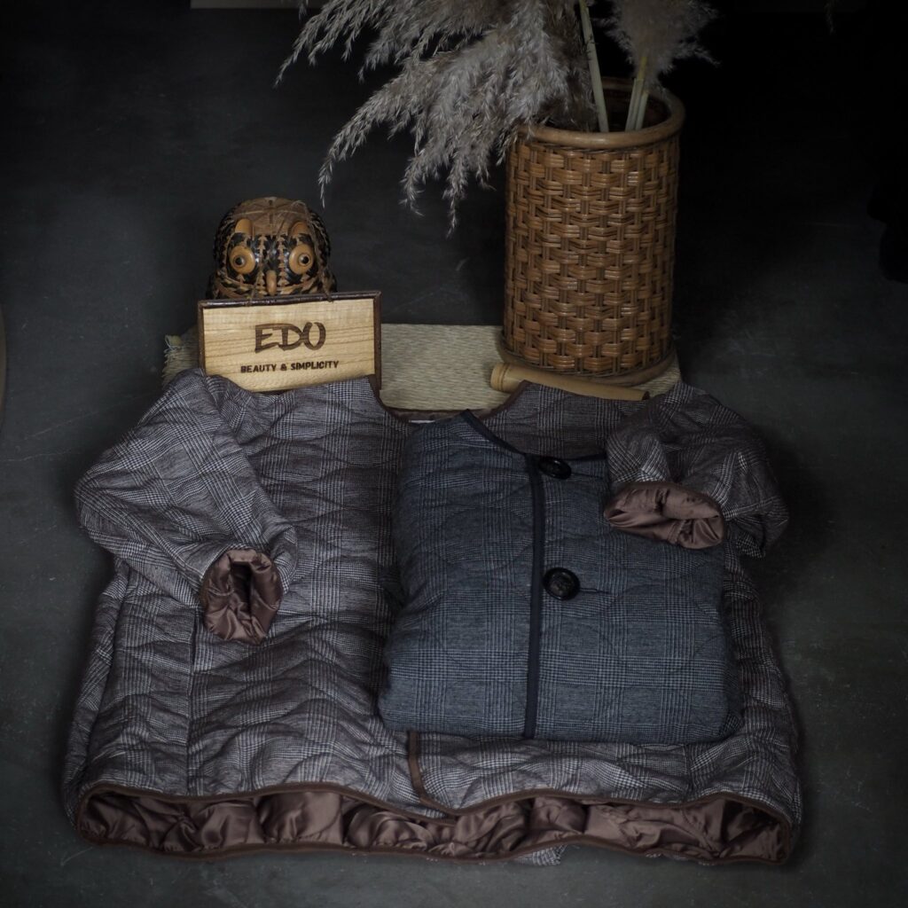軽くて柔らかい表生地に中綿をたっぷり込めたあたたかくて着心地の良い生地。ふんわり感が増した風合いになっています
