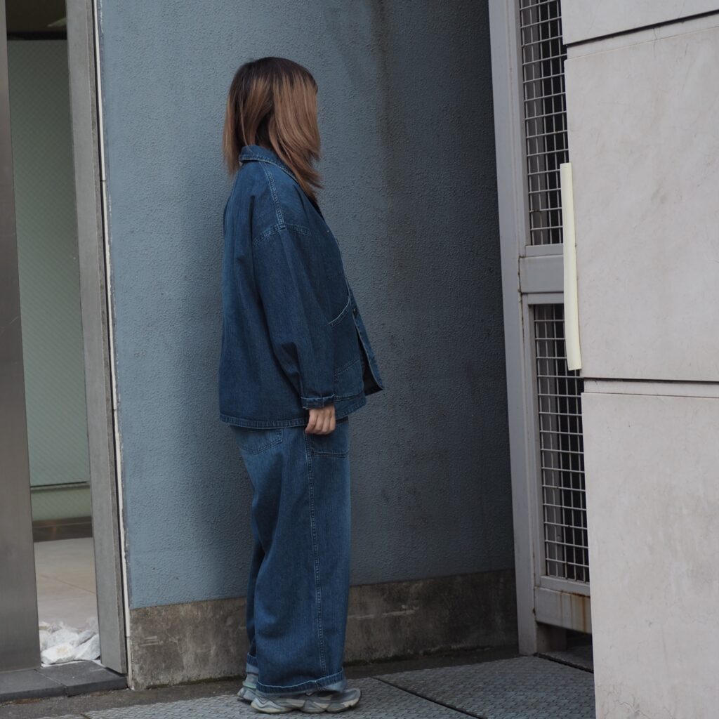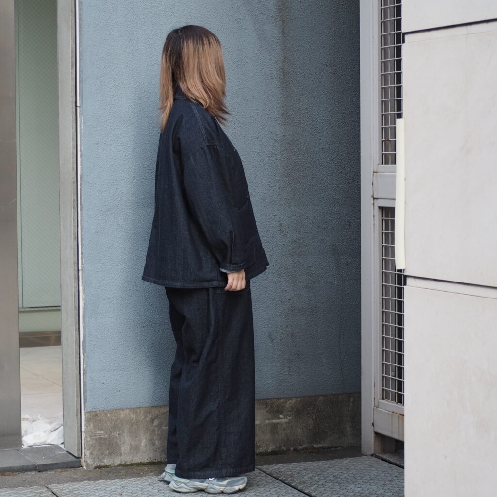 同素材のデフォルメエペパンツとのセットアップのスタイリングもお楽しみいただけます。