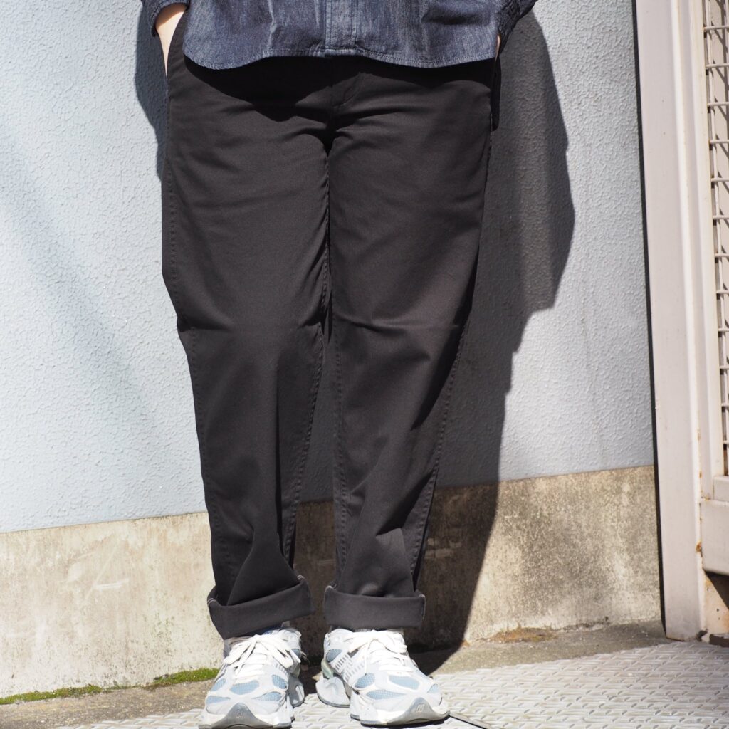 腰回りに程よく余裕があり、すっきりとしたテーパードシルエットで、家事や外出、旅行まで幅広く活躍。日常に自然と馴染む一本です。