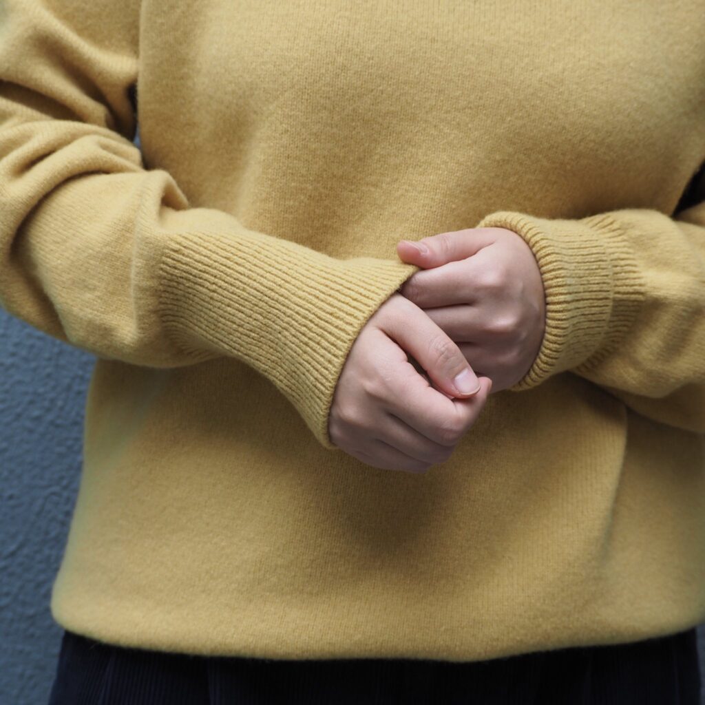 若い羊の毛は空気を多く含んでいるため、ふっくらとした温かみのあるニットに仕上がります。