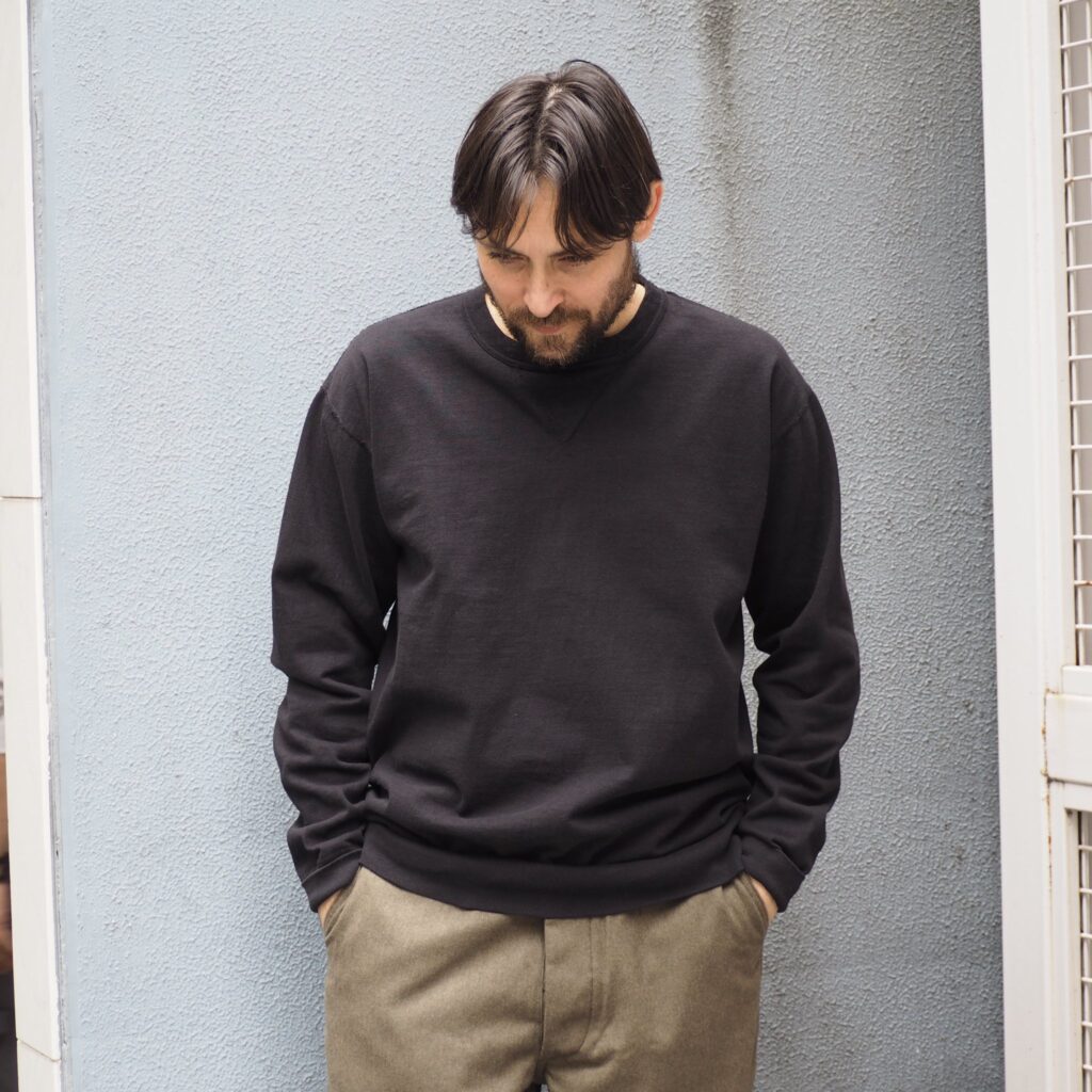 袖口と裾のリブの寸法やフィット感などシルエットを追求し再構築したトレーナー。体にほどよくフィットするようにバランスを整えた逸品です。