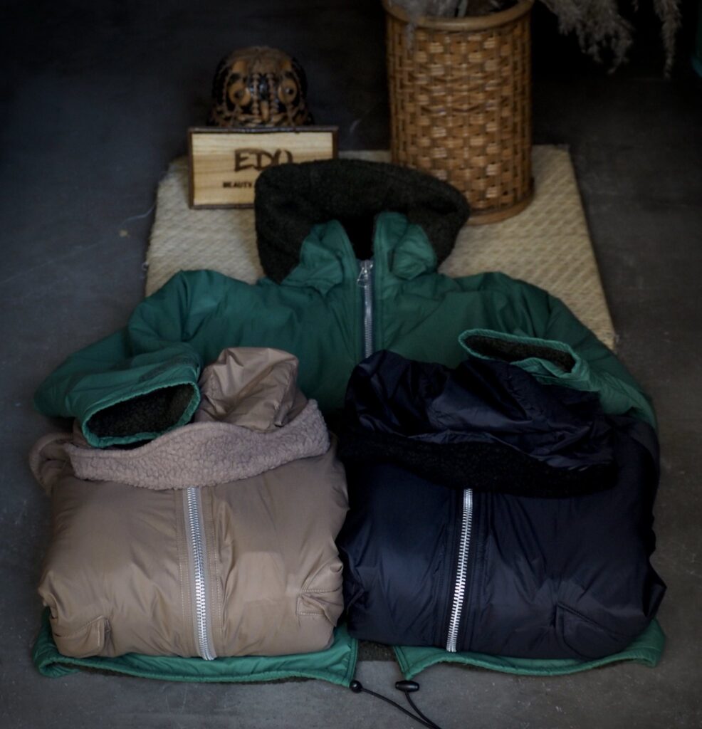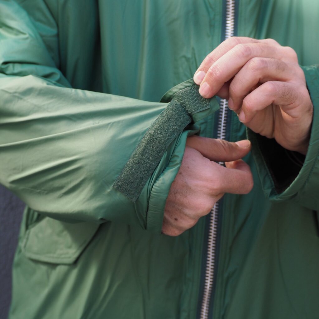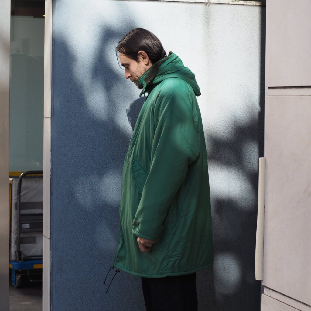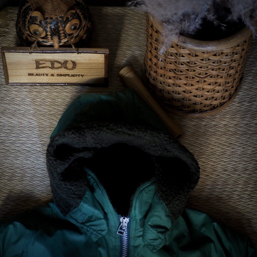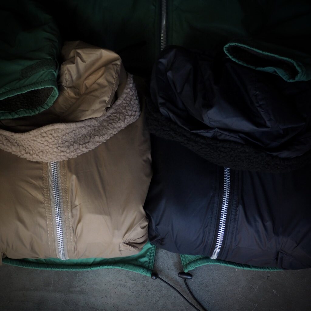 ミリタリーライクなフラップポケットや、袖口・フードのベルクロ仕様など、細部の機能性にも拘りました。フードは取り外し可能で、スタイルや気温に合わせて印象を変えられます。