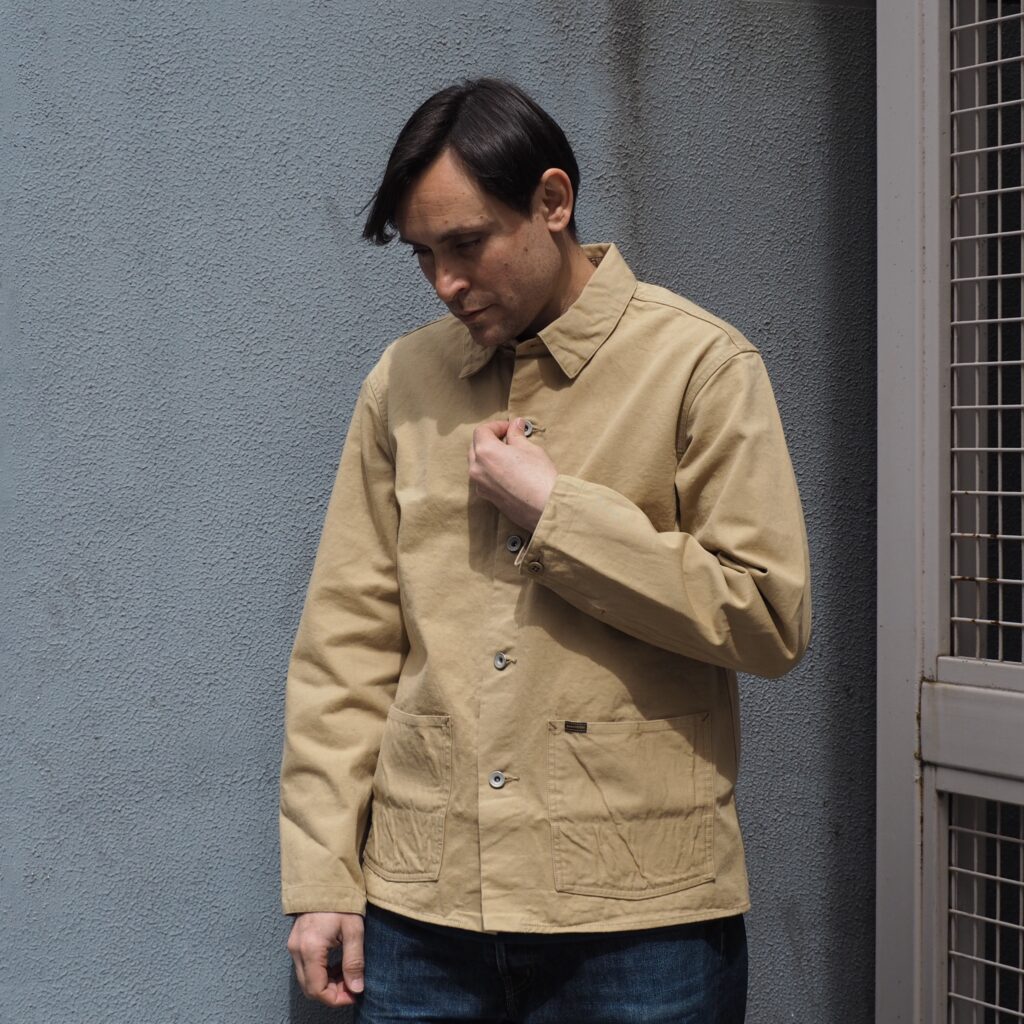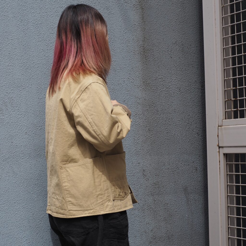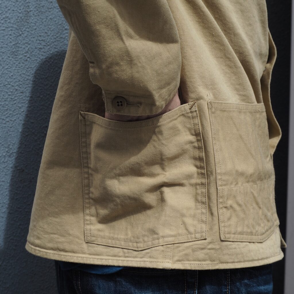 装飾を極力省き、ワークウエアとしての合理性と日常着としての美しさを両立させた一着です。ポケット底にはスレキを挟み込んだ二重構造を採用し、実用性と耐久性をしっかりと確保しています。