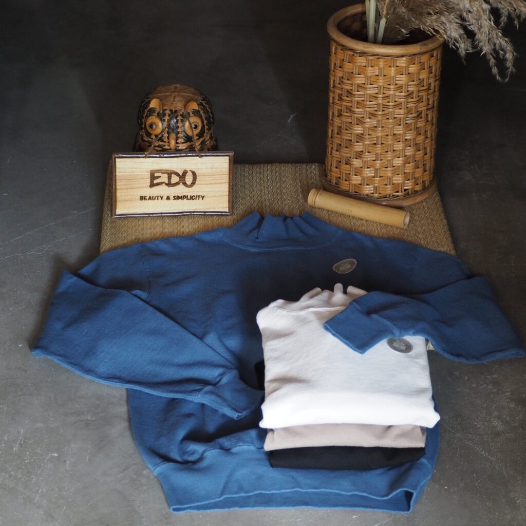 しっかりとしたコットン素材で型崩れしにくく、洗濯機で繰り返し洗っても大丈夫なタフさが魅力。肌触りが良いのはもちろんですが、着込むほどに体に馴染み、経年変化も一緒に楽しめる特徴があります。