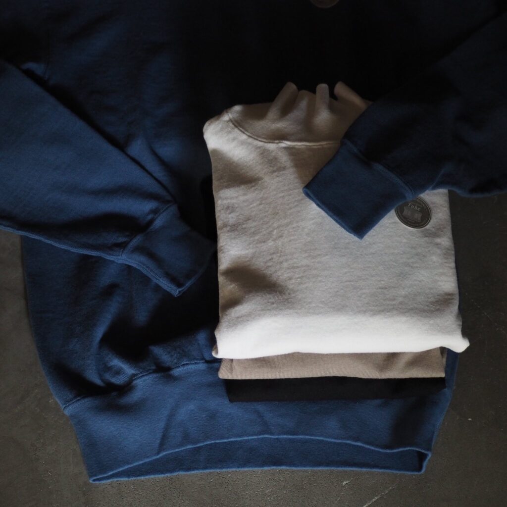 引き揃えた糸を丁寧に編み込むことで実現できる目がしっかりと詰まったコットン天竺素材を使用しました。カットソーほど薄くなく、スウェットほど厚みがなくといった季節の変わり目やシーズンレスに便利な素材です。
