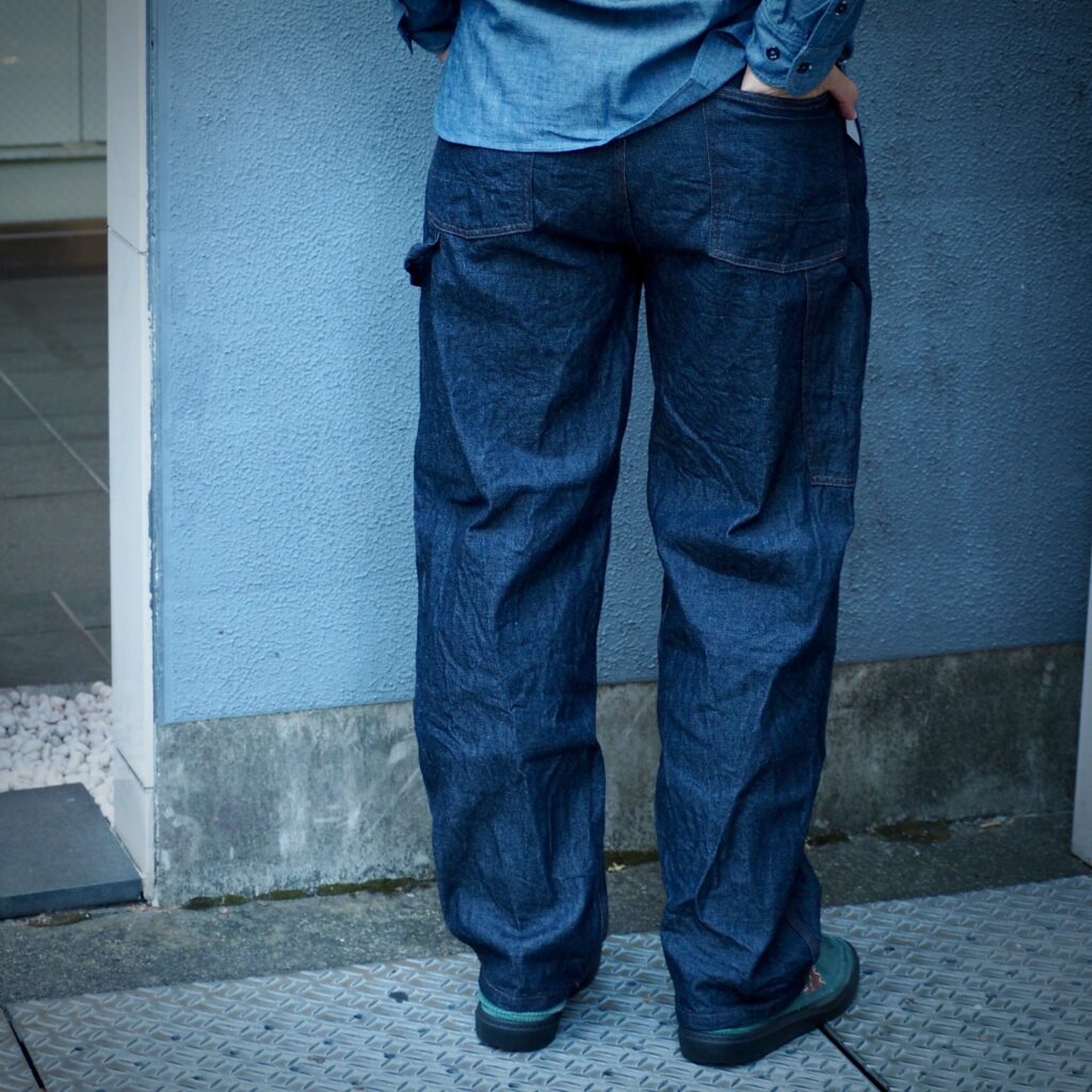 ウエストに後ゴムを施し、楽に着用できるよう現代風にアレンジ。サイドにあしらったスケールポケットやバックのハンマーループも施され、ペインターパンツの機能的なディテールが多く見られます。